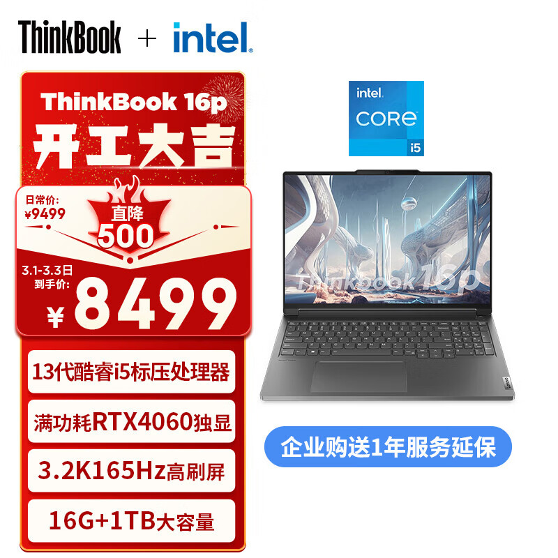 ThinkPad联想ThinkBook 16p 英特尔酷睿i5 16英寸高性能轻薄游戏创作本13代i5-13500H 16G 1T RTX4060 3.2K 165Hz价格:8499.00元!