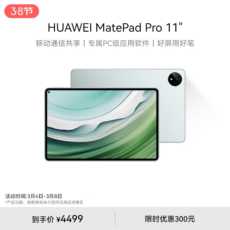 HUAWEI MatePad Pro 11英寸2024华为平板电脑2.5K屏卫星通信星闪技术办公学习12+512GB WIFI 雅川青价格:4799.00元!