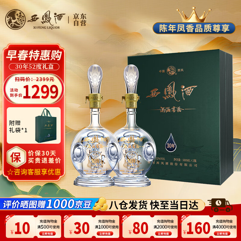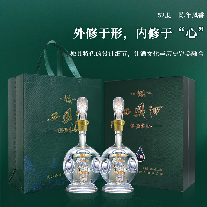 西凤酒 30年白酒礼盒52度陈年凤香型高端年份白酒送礼收藏500ml*2瓶价格:1298.00元!
