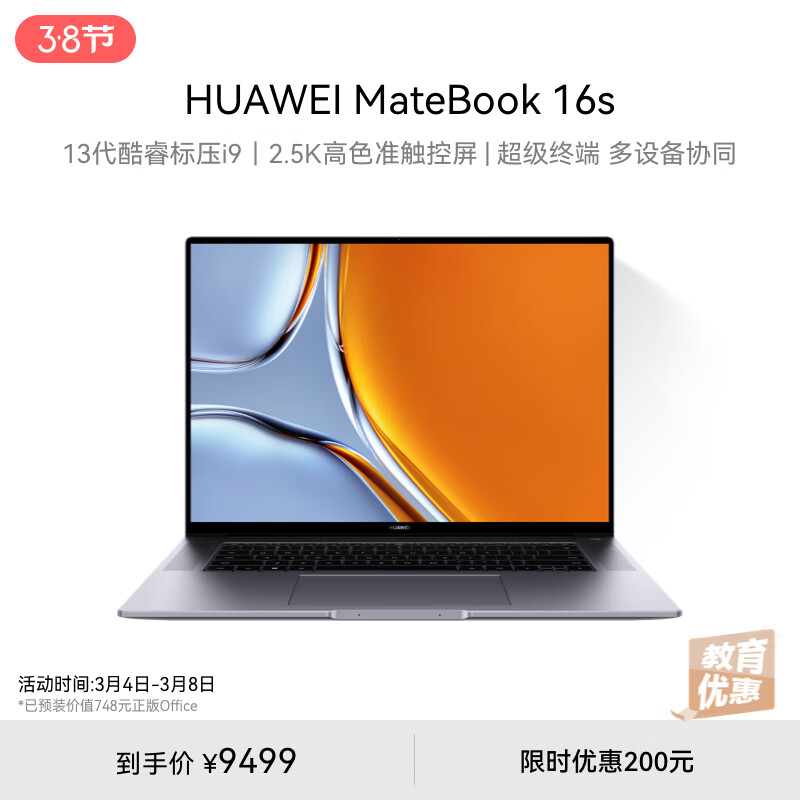 华为MateBook 16s 笔记本电脑 13代酷睿标压处理器/2.5K高色准触控屏/轻薄办公本 i9 32G 1T 深空灰价格:9699.00元!