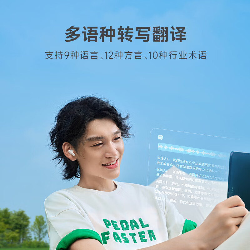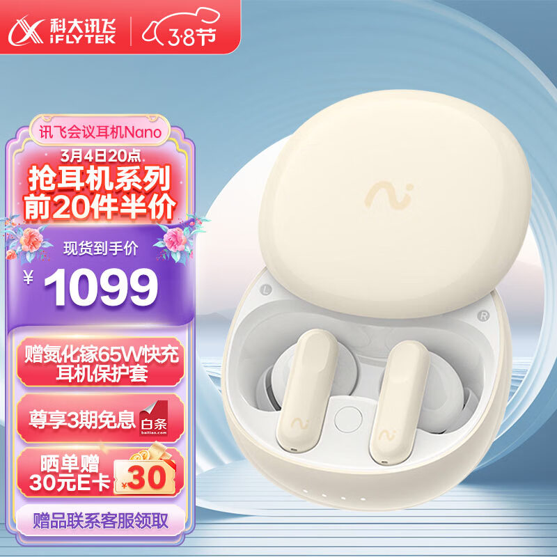 科大讯飞(iFLYTEK)录音降噪会议耳机Nano 皓月白 无线蓝牙耳机 主动降噪 同传听译 录音转文字翻译苹果华为通用价格:1199.00元!