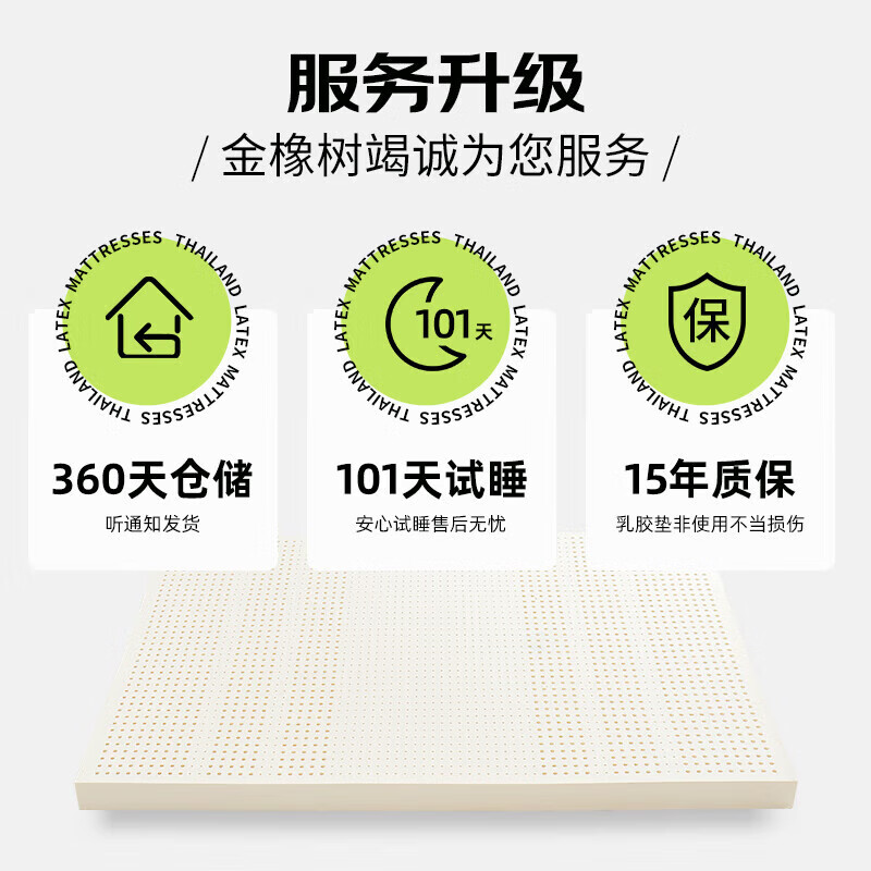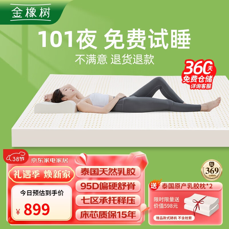 金橡树泰国乳胶原液进口床垫 180*200*5cm 1.8米 92%乳胶 泰舒升级款95D价格:899.00元!