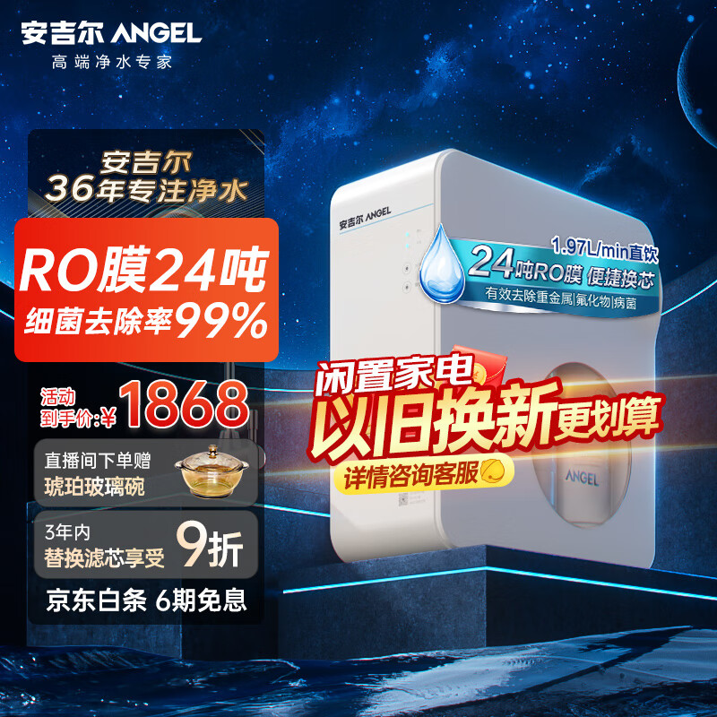 安吉尔净水器家用魔方Pro1900升级1.97/分钟大流量直饮长效RO反渗透无桶厨下式纯水机J3472-ROB90价格:1868.00元!