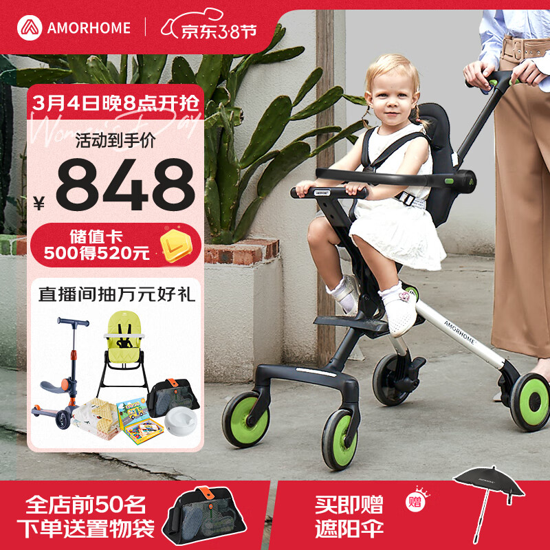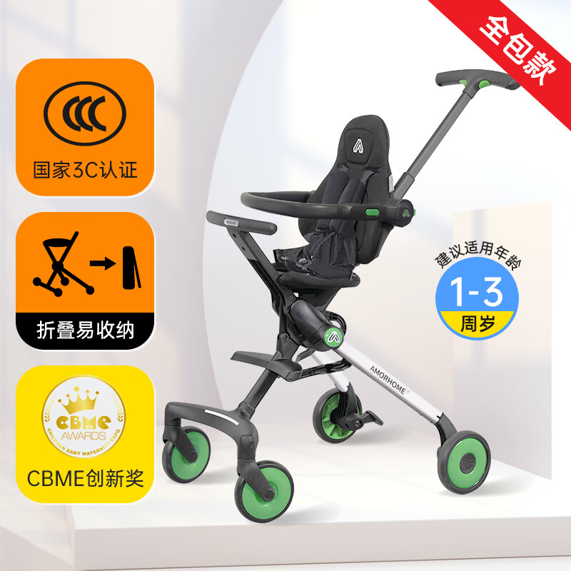 AMORHOME遛娃神器婴儿推车可坐可躺轻便折叠宝宝溜娃折叠小易收 绿色pro价格:843.00元!
