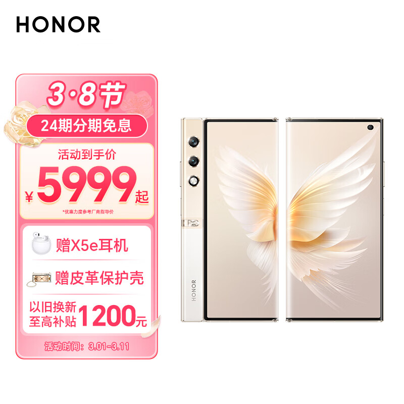 荣耀V Purse 折叠屏 8.6mm超轻薄 2K超清大屏 超自由写真相机 5G手机 16GB+256GB 山茶金价格:5999.00元!