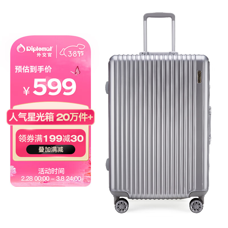 Diplomat外交官铝框行李箱大容量25英寸拉杆箱星光男女密码旅行箱TC-9033价格:799.00元!