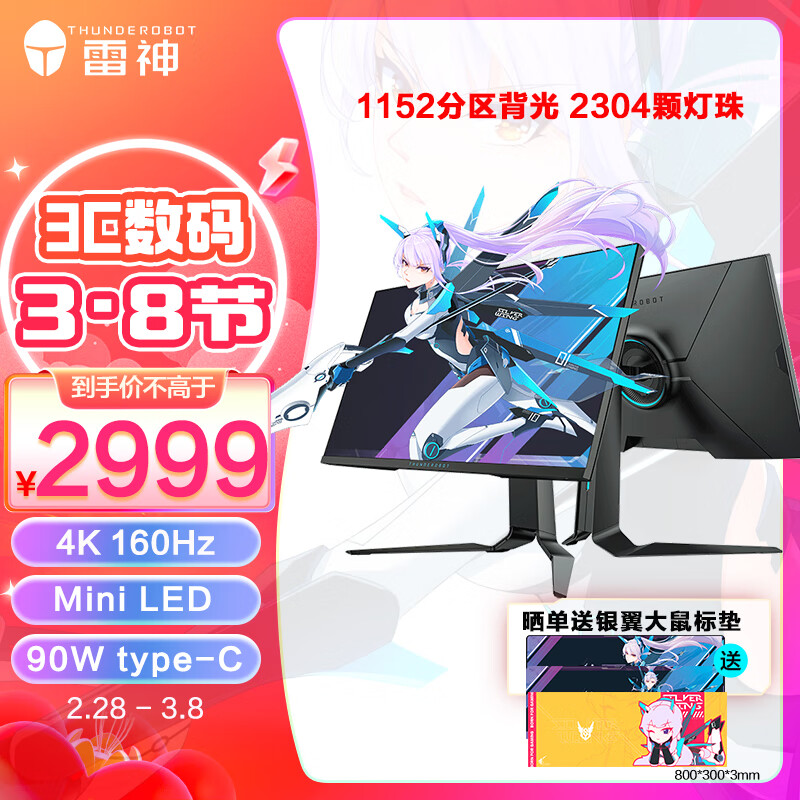 雷神银翼27英寸 4K 160Hz MINI LED 1152分区 Fast IPS Type-C HDMI 2.1 电竞游戏显示器/LU27F160M价格:3999.00元!