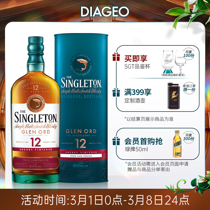苏格登12年 女神节 流金雪莉 高地产区 单一麦芽 威士忌洋酒700ml价格:335.00元!