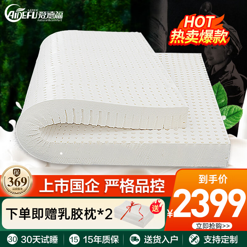 爱德福乳胶床垫泰国进口天然乳胶 榻榻米1.8m单双人180*200*15(95D)价格:2849.00元!