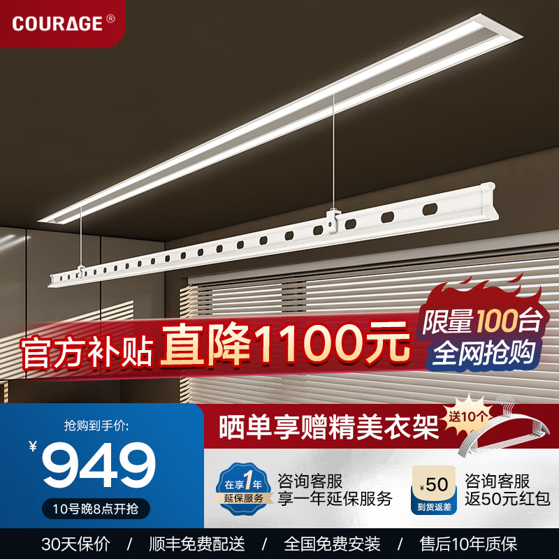 卡瑞琪(COURAGE)电动晾衣架隐形吊顶阳台家用隐藏式晾衣架多功能升降晒衣架 2.7米价格:2049.00元!