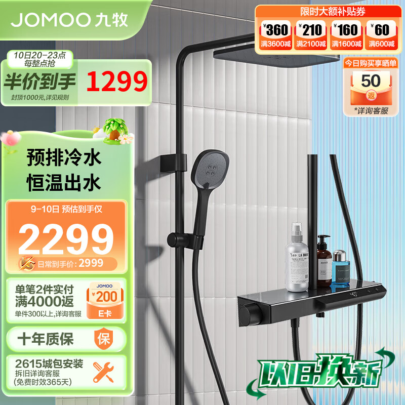 九牧JOMOO花洒套装智能预排冷水黑色大顶喷增压26175-695/DBC-1价格:2899.00元!