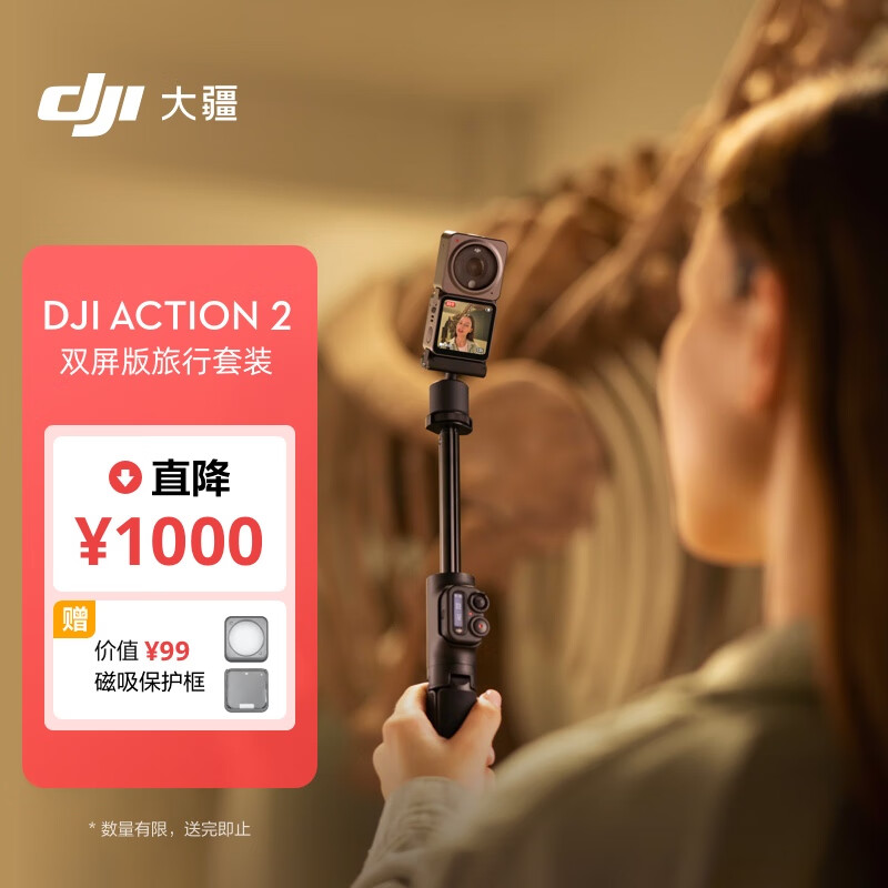 大疆 DJI Action 2 双屏版旅行套装 Osmo 灵眸防抖运动相机 高清vlog 户外露营旅行便携式全场景摄像机价格:2307.90元!