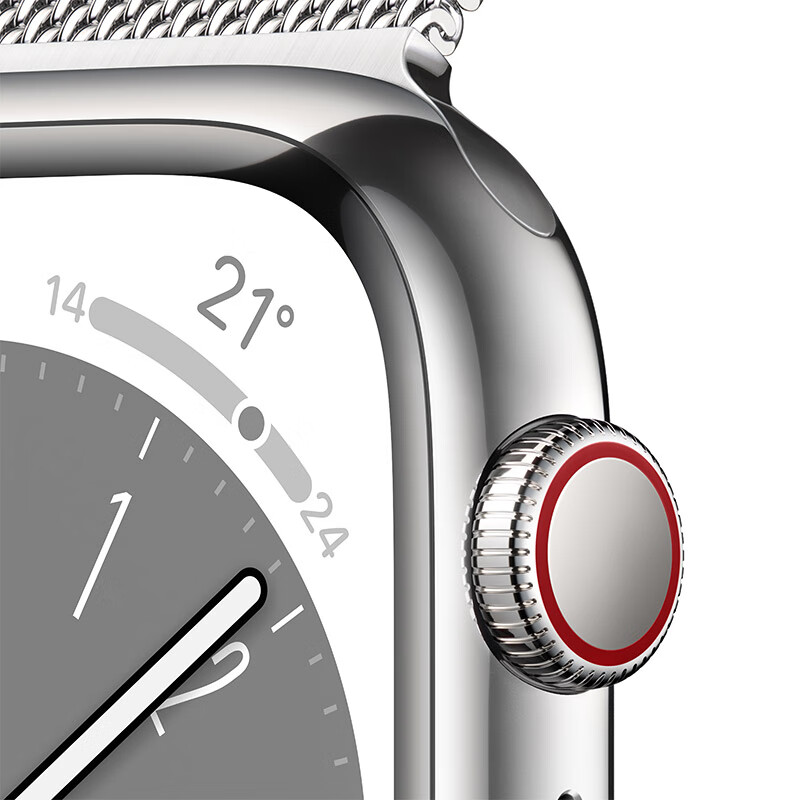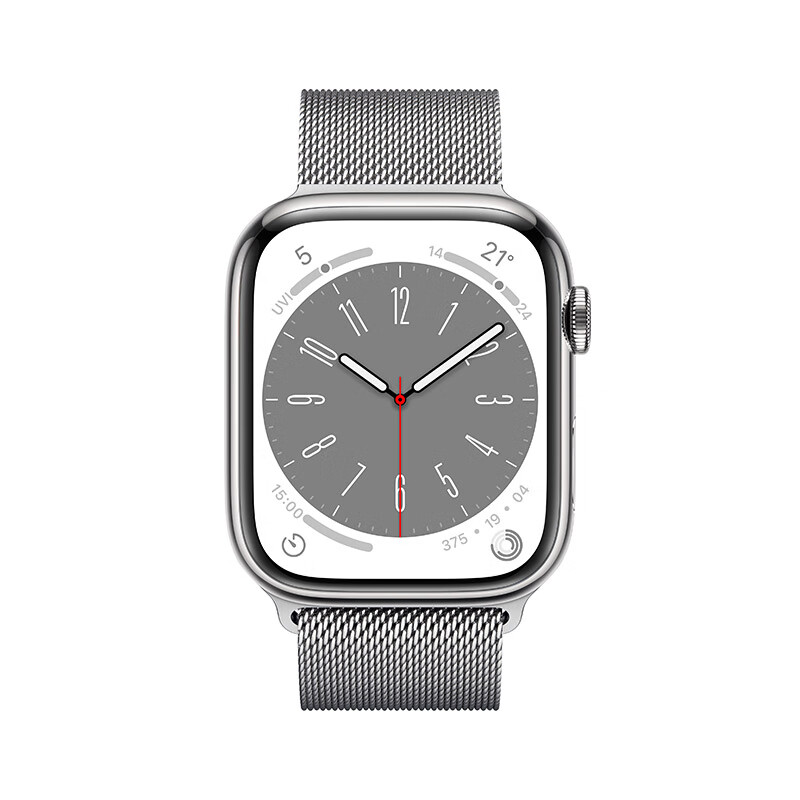 Apple/苹果 Watch Series 8 智能手表GPS+蜂窝款45毫米银色不锈钢表壳银色米兰尼斯表带S8 MNKK3CH/A价格:4299.00元!