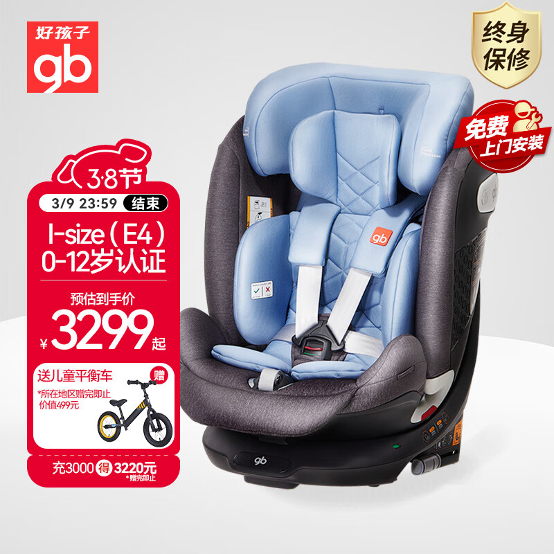 好孩子(gb)儿童座椅0-12岁360°旋转I-Size认证8系高速 UNARI-J-5015B价格:3799.00元!