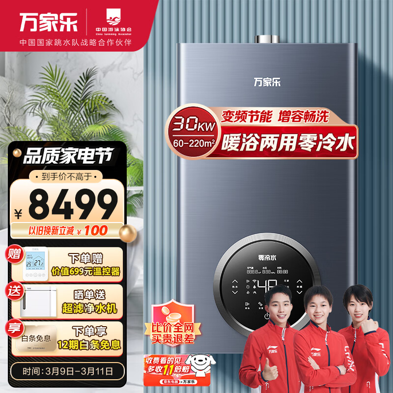 万家乐壁挂炉 洗浴采暖两用 燃气热水器 暖气片地暖 零冷水 增容恒温30KW天然气R5L【100-230平】价格:8499.00元!