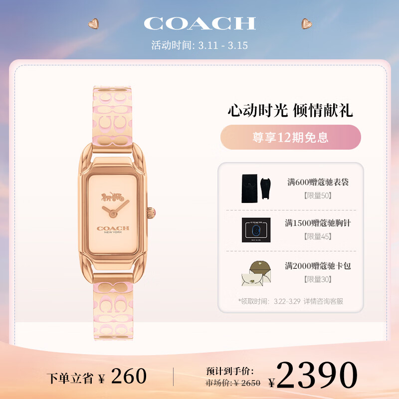 蔻驰(COACH)CADIE系列 经典马车标识 C标装饰钢带 石英手表女表14504194价格:2650.00元!