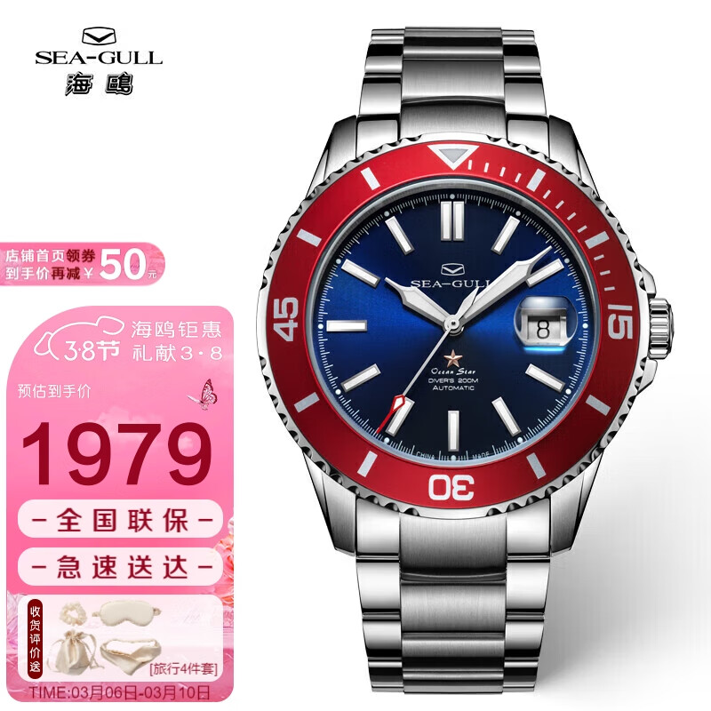 海鸥(SEAGULL)手表男士自动机械表 男表礼物 200米防水潜水表腕表816.92.6113价格:2259.00元!