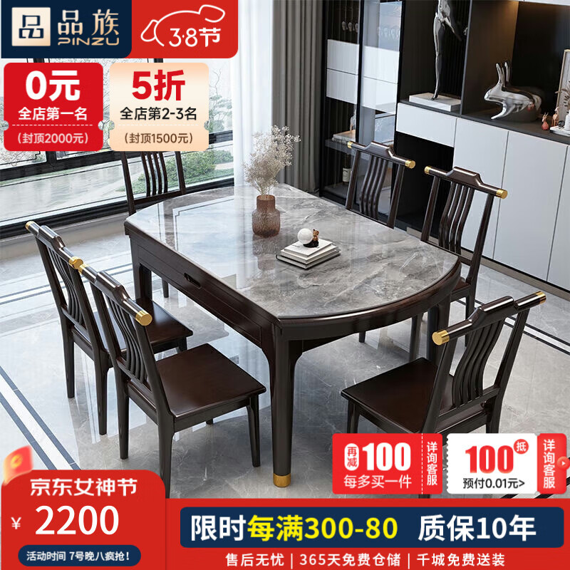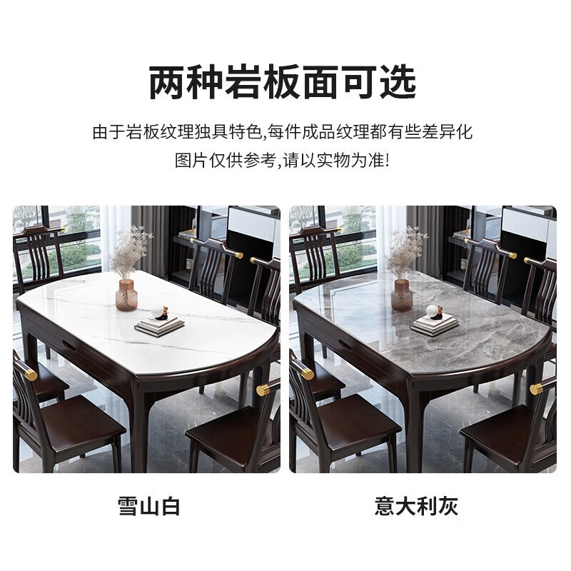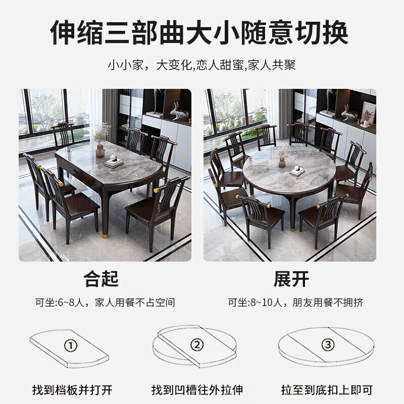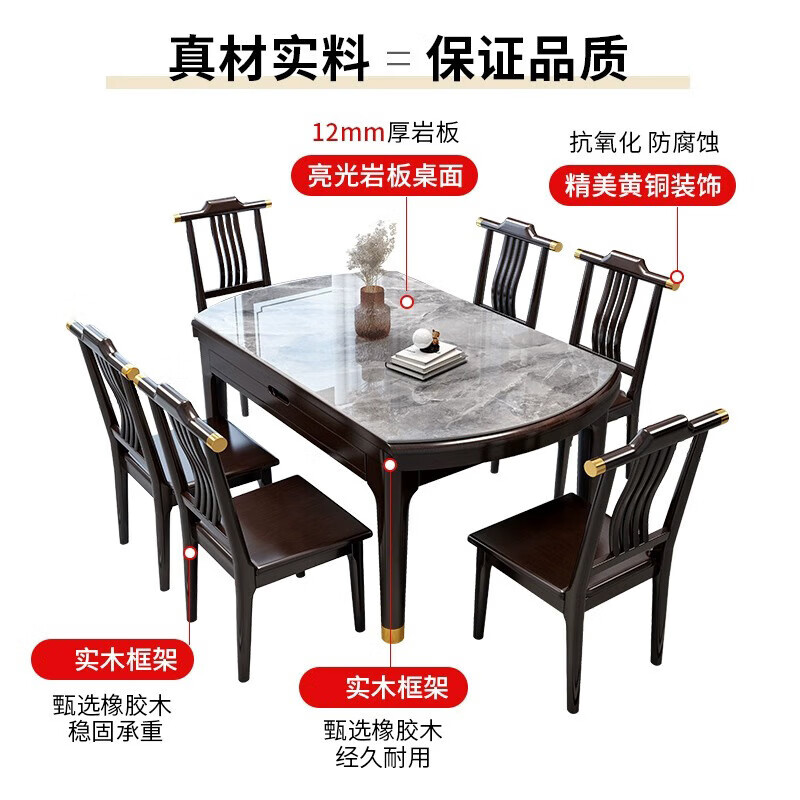 品族岩板餐桌椅组合伸缩折叠新中式可变圆桌吃饭桌子CZ-009 1.5+4a价格:3000.00元!