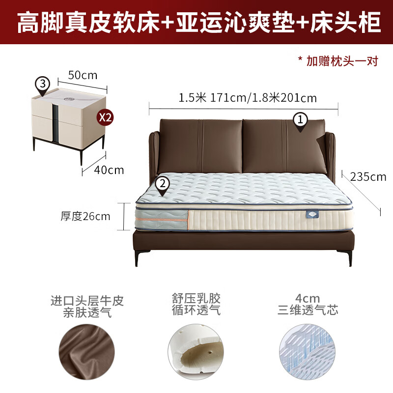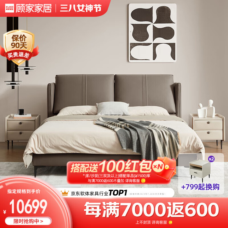 顾家家居(KUKA)无极抗菌纳帕皮床192+亚运垫0099D+PT7203B*2山野咖1.8米价格:10699.00元!