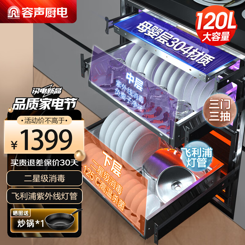 容声(RONGSHENG)消毒柜家用 嵌入式消毒柜 三层大容量镶嵌式二星消毒 厨房消毒碗柜RX06A价格:1369.00元!