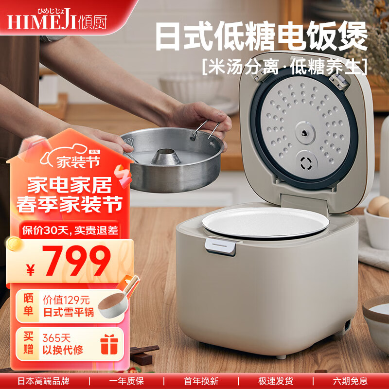 倾厨 日本低糖电饭煲电饭锅米汤分离智能降低淀粉 小型家用多功能2-3人迷你电饭煲可定时 原木杏白【濑户烧陶瓷釉内胆】价格:999.00元!