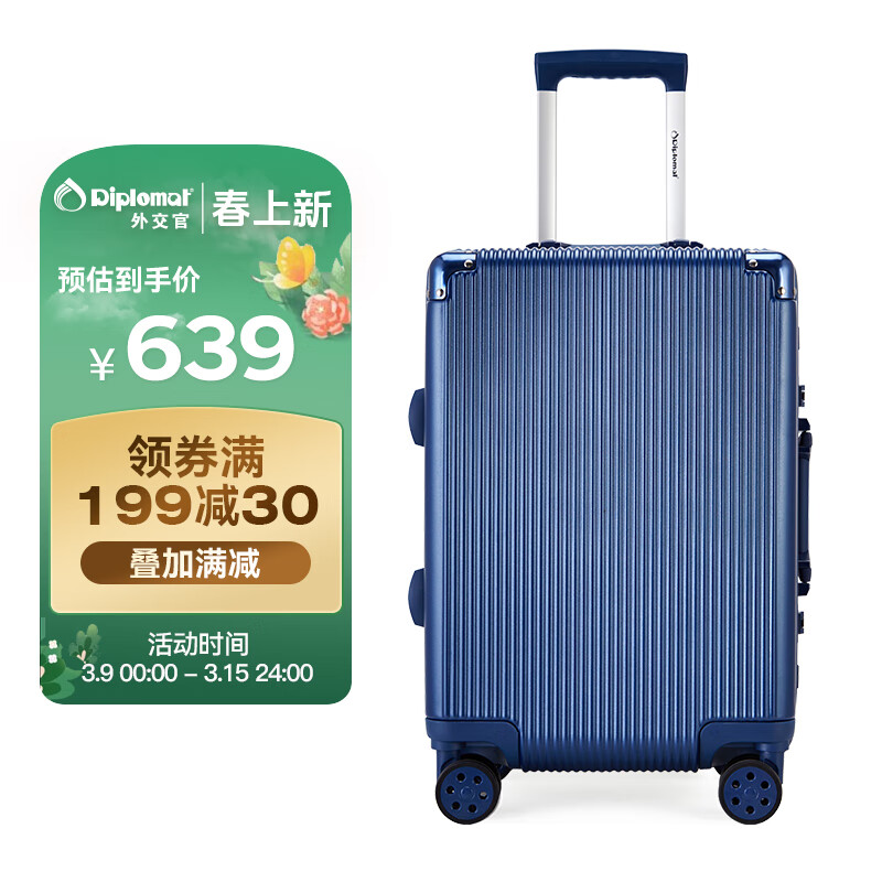 Diplomat外交官行李箱带护角铝框箱拉杆箱双TSA密码锁登机旅行箱TC-9182价格:839.00元!