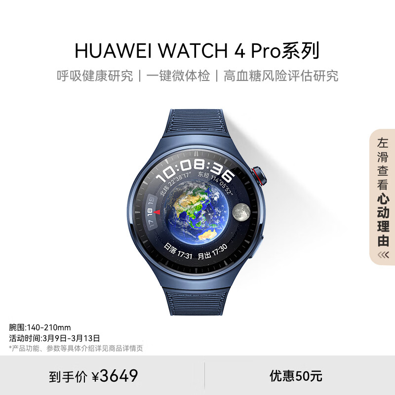 华为WATCH 4 Pro华为手表智能手表呼吸健康研究华为运动手表蔚蓝地球支持龙年表盘价格:3649.00元!