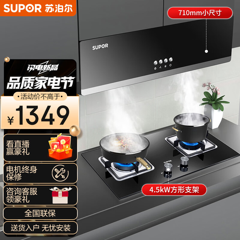苏泊尔(SUPOR)抽油烟机 烟灶套装 15立方中式小户型吸油烟机家用烟机灶具套装 Z1D+QB506液化气价格:1349.00元!