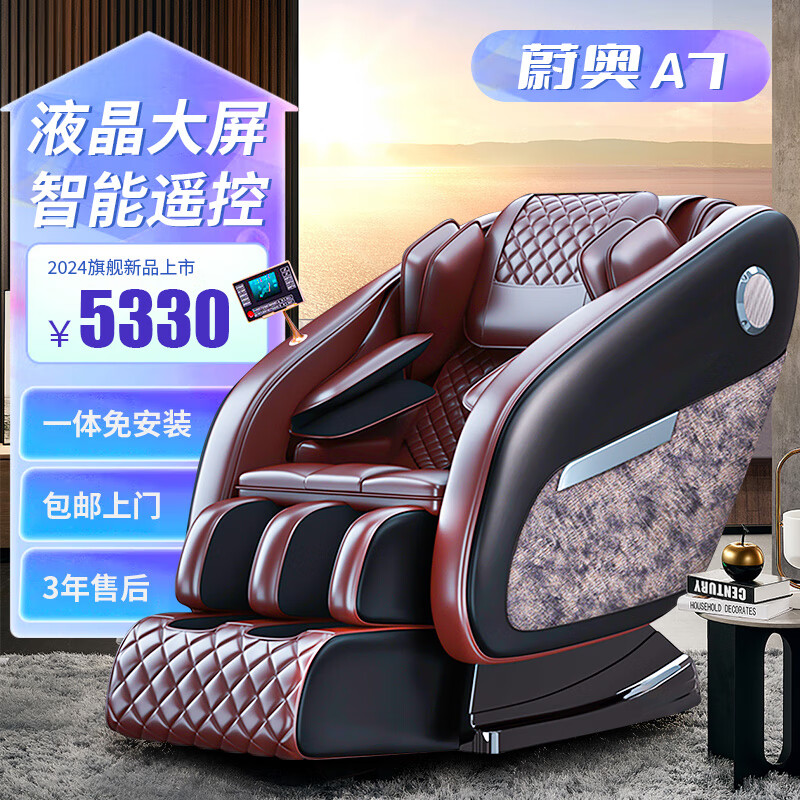 蔚奥X5新款家用按摩椅智能多功能全身按摩沙发零重力太空舱 深棕色价格:5330.00元!