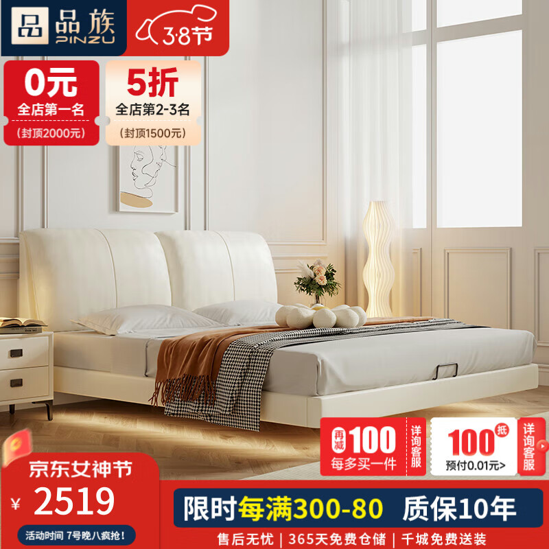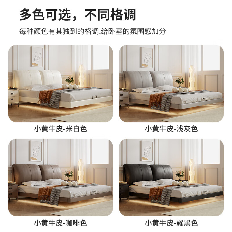 品族床轻奢皮床头层牛皮床双人床大象耳朵真皮床1.8米悬浮床658-03价格:3399.00元!