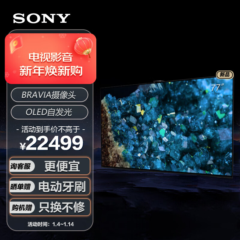 索尼(SONY)XR-77A80EL 77英寸4K HDR OLED屏幕发声 XR认知芯片大屏屏智能电视机 (A80EK升级款)价格:22499.00元!