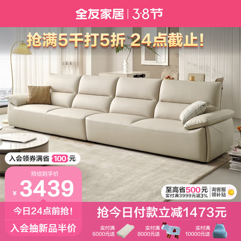 全友家居 奶油风布艺沙发大户型客厅家具直排科技布沙发家用111059价格:4912.86元!