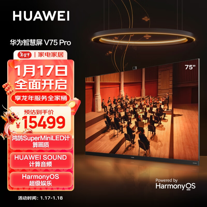 华为智慧屏V75 Pro 75英寸120Hz高刷超薄屏 4K超高清智能护眼大屏电视机 MiniLED以旧换新HD75FRUA价格:15499.00元!