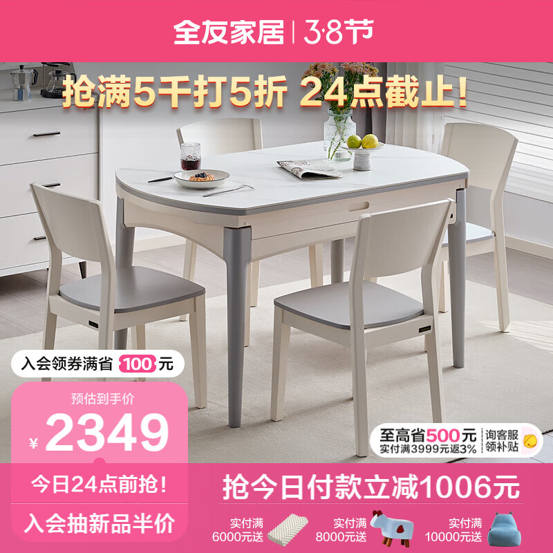 全友家居 餐桌椅 现代简约实木框架餐桌椅可伸缩折叠岩板餐桌DW1028K价格:3355.71元!