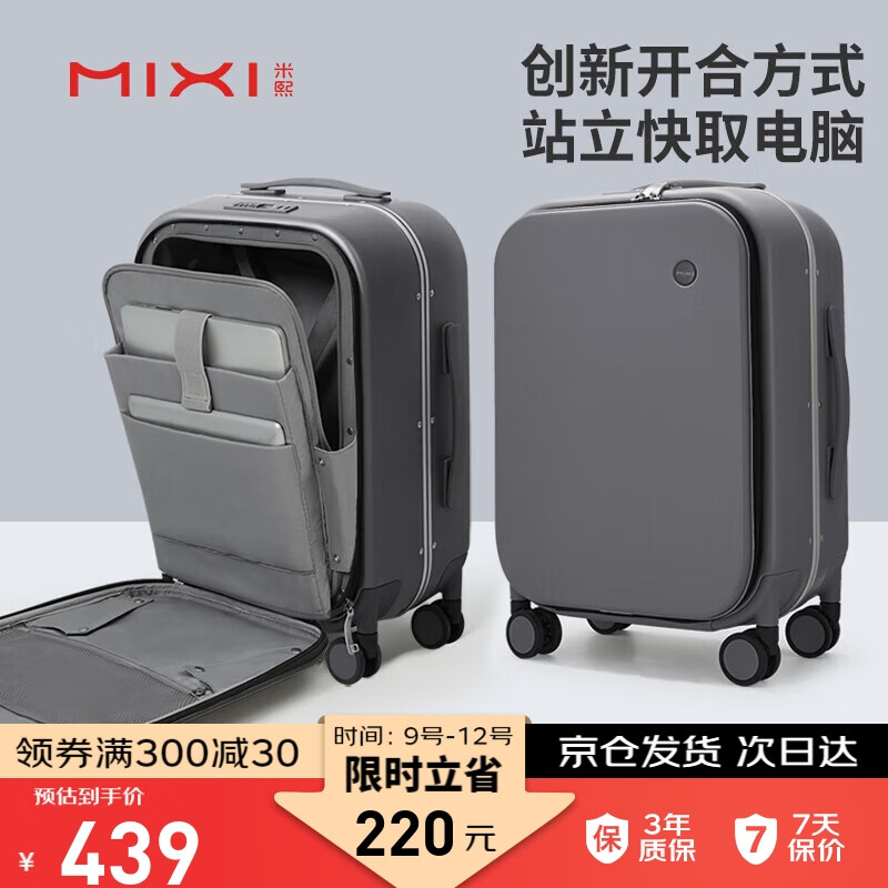 米熙前开盖拉杆箱子行李箱大容量登机箱铝框箱男旅行箱20英寸矿岩灰60价格:659.00元!