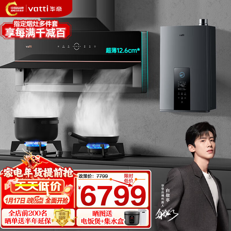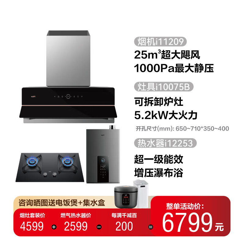 华帝(VATTI)油烟机灶具套装华帝官方理想家X5/X5S/X5Pro超薄近吸双腔25立方爆炒风量变频侧吸超薄天然气灶 天然气三件套(X5+可拆卸灶75B+253-16)价格:7799.00元!