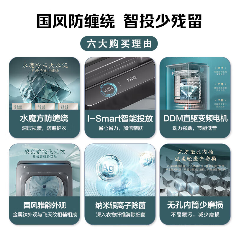 小天鹅(LittleSwan)波轮洗衣机全自动 水魔方系列 旗舰防缠绕 国风外观 智能投放 10公斤 以旧换新TB100S88价格:3482.30元!