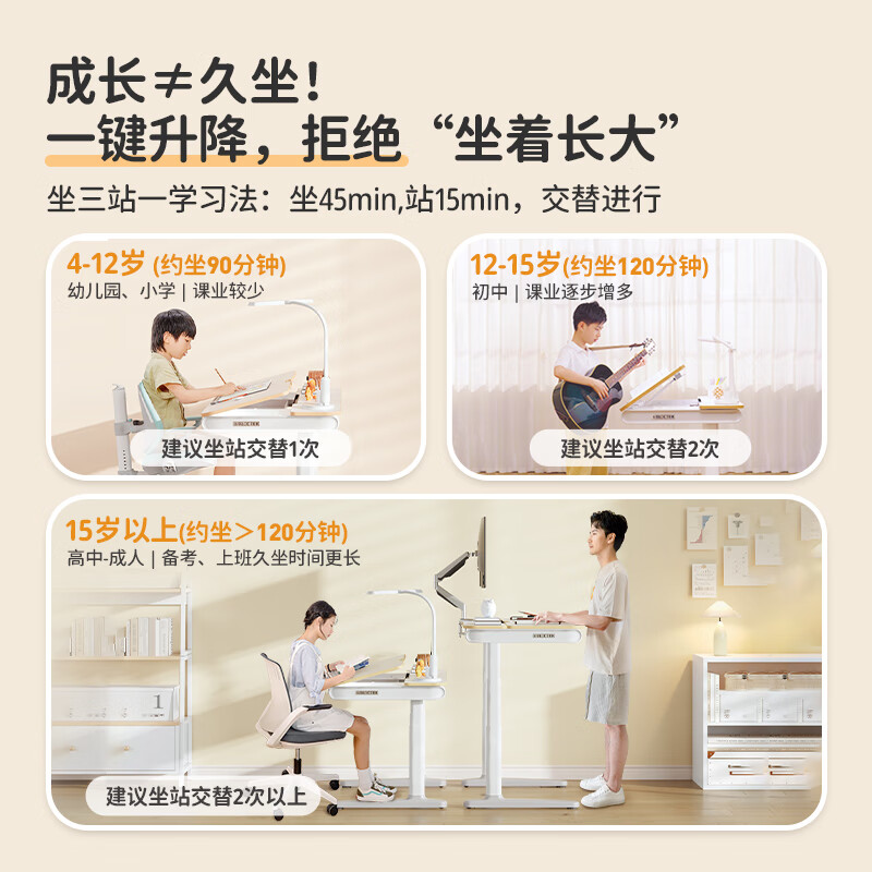 乐歌(Loctek)儿童学习桌实木【全龄段电动升降桌】小学写字书桌家用桌子1.2mT4价格:4019.00元!
