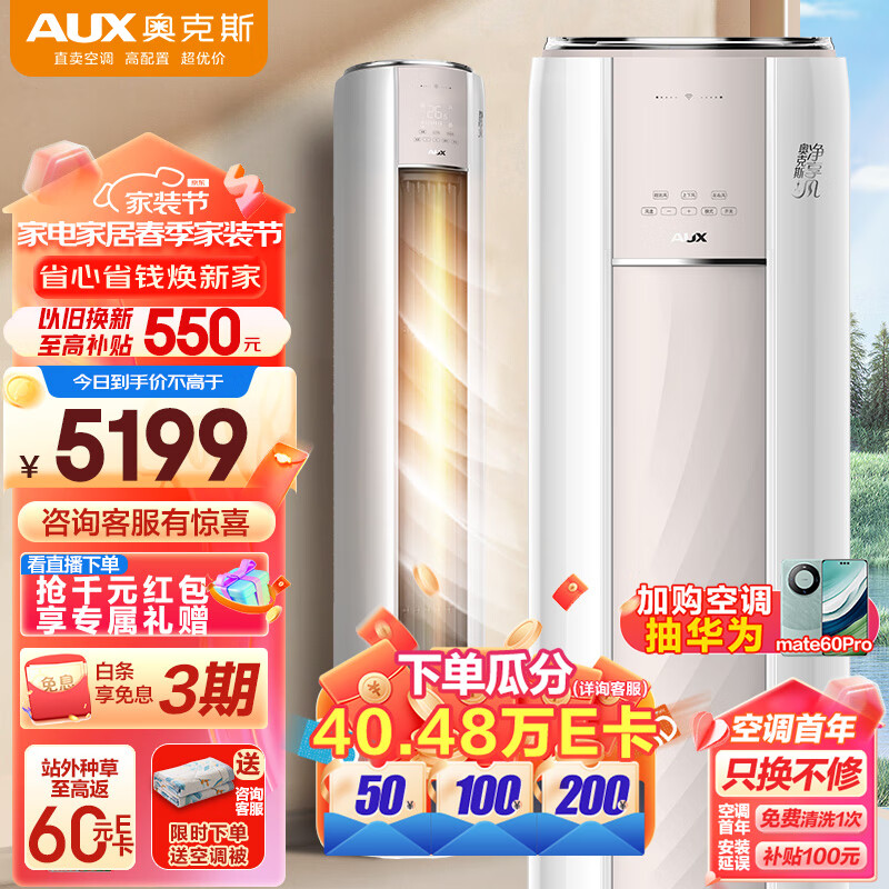 奥克斯(AUX)立式空调 3匹柜机 一级能效柜机 客厅节能?WIFI智控 超远风 升级大风口(KFR-72LW/BpR3AQE1(B1))价格:5134.00元!