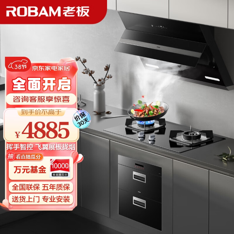 老板(Robam)抽油烟机厨房多件套 家用挥手智控21风量烟机燃气灶具100L消毒柜天然气27A3H+32B7DT+XB713A价格:4885.00元!