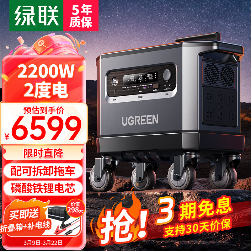 绿联户外电源GS2200W大功率2度电大容量220V快充移动储能车载应急备用价格:6999.00元!