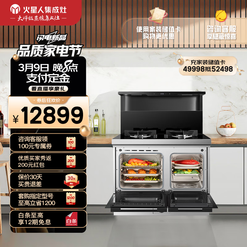 火星人ET30BCZ 集成灶蒸烤一体 左蒸烤炸右快蒸 家用蒸箱烤箱 燃气灶天然气价格:13099.00元!