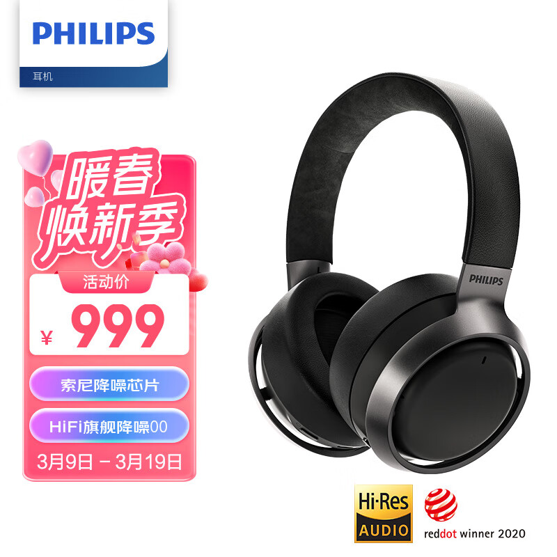 飞利浦(PHILIPS)头戴式耳机双芯片ANC主动降噪耳机蓝牙耳机Hi-Res高保真触控面板苹果华为小米手机通用L3价格:999.00元!