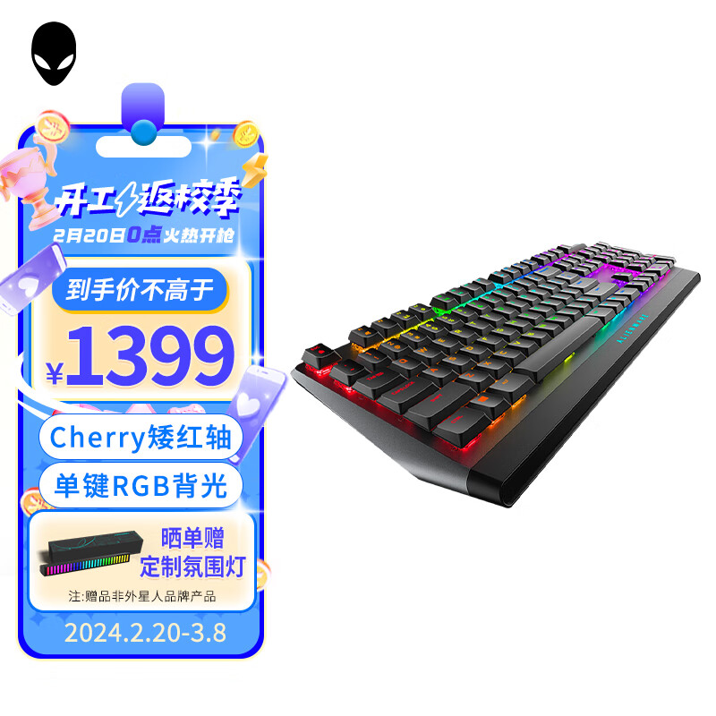 外星人(Alienware)AW510K 游戏机械键盘 有线键盘 Cherry mx矮红轴 高端电竞RGB外设 送男友送女友 黑色价格:1399.00元!