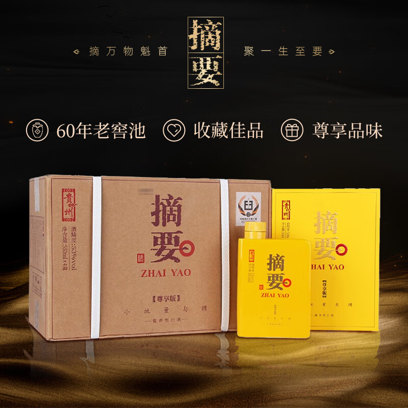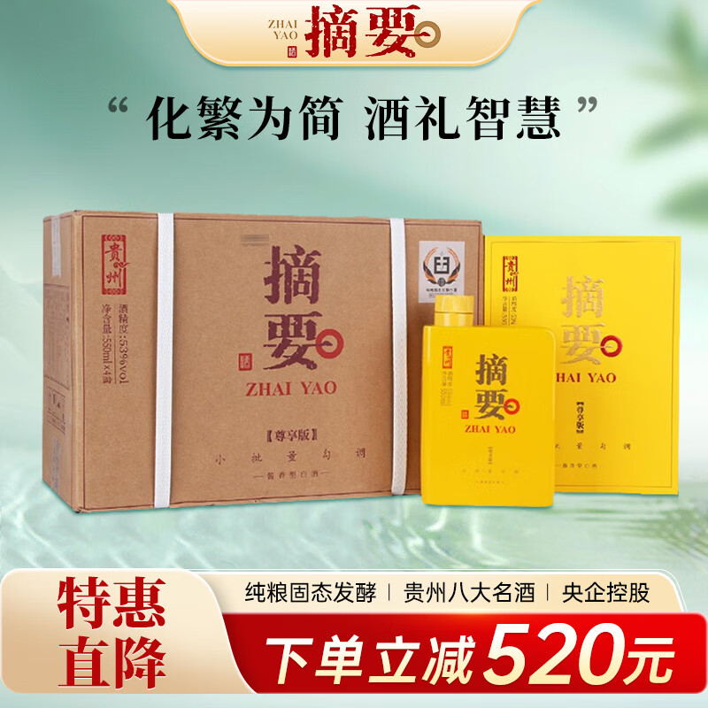金沙摘要尊享版高端酱香型53度白酒收藏宴请550ml*4 整箱装价格:4206.00元!