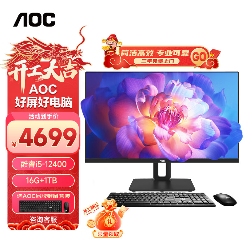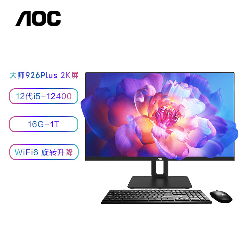 AOC大师926Plus 27英寸 2K 高清办公一体机台式电脑(12代i5-12400 16G 1T 无线WiFi6 旋转升降 )深灰价格:4499.00元!