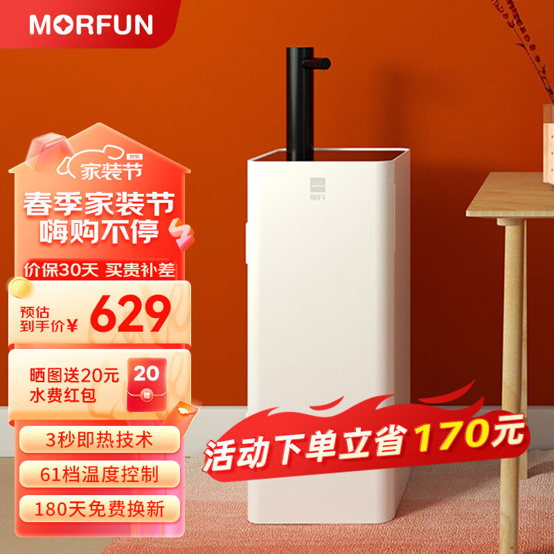 魔凡(MORFUN)即热式茶吧机饮水机家用高端客厅用智能全自动上水下置式桶装水办公室小型速热泡茶烧水一体机 MF809黑色柱【经典款-不可升降】 即热型价格:799.00元!