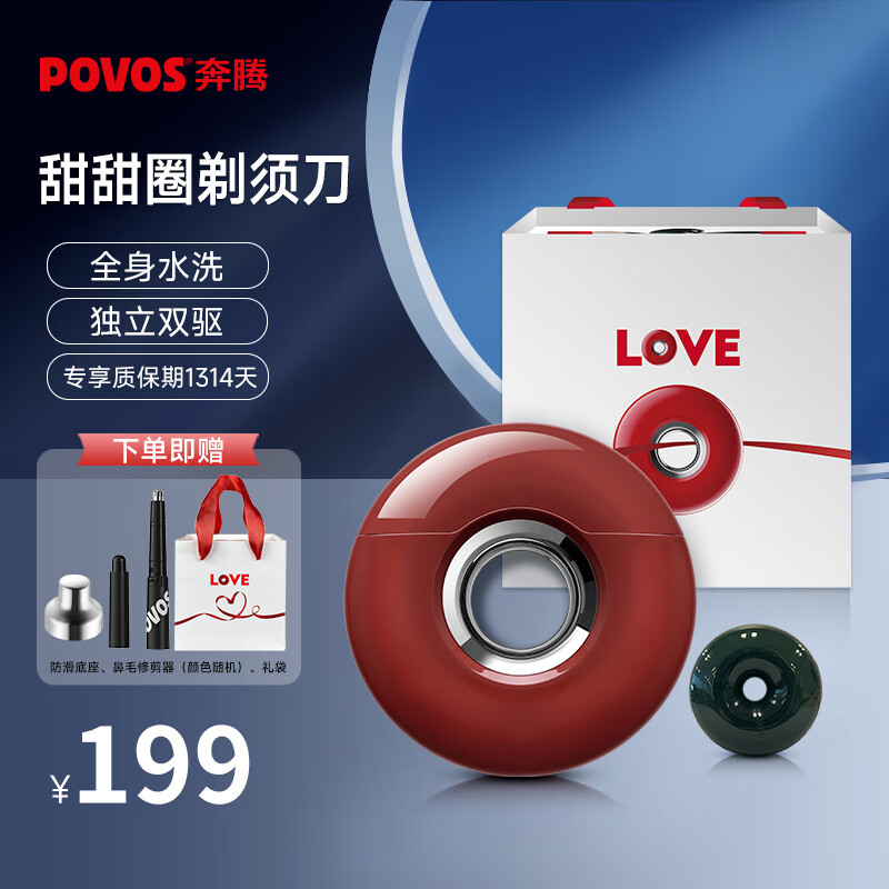 奔腾(POVOS)甜甜圈电动剃须刀 小巧便携刮胡须刀须刨智能T000浓情棕 生日纪念日礼物送男友送老公送男生价格:219.00元!