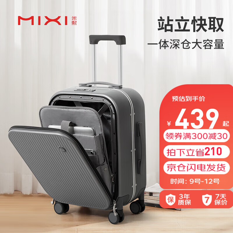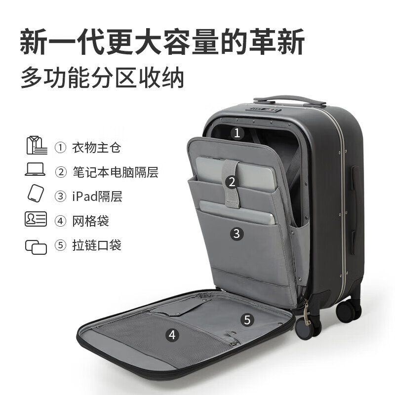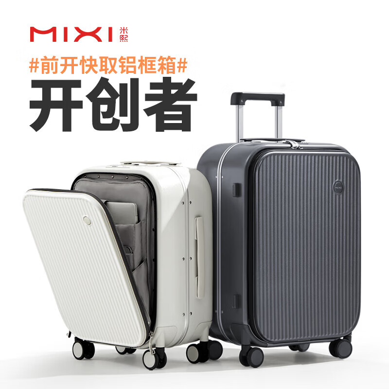 米熙前开盖铝框拉杆箱子行李箱男旅行箱子密码箱万向轮20英寸矿岩灰70价格:649.00元!