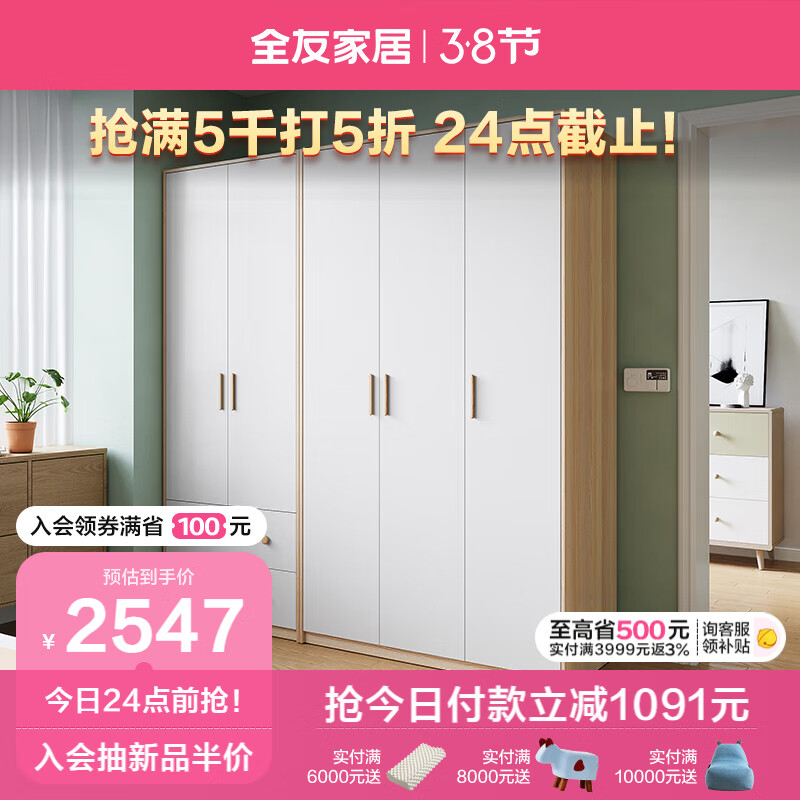 全友家居 衣柜现代北欧风二门三门衣柜组合卧室储物平开门衣柜126331价格:3638.57元!